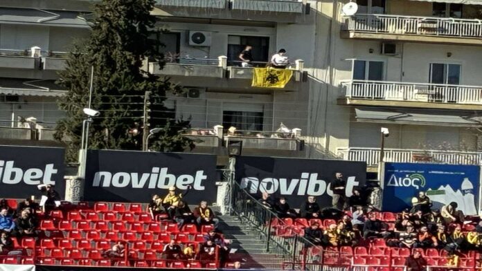 Πέρα από την τρέλα που επικρατεί για την ΑΕΚ στους γύρω δρόμους του γηπέδου, έχουν παραταχθεί και σημαίες με τον “Δικέφαλο” και στα μπαλκόνια γύρω από το γήπεδο! Παντού ΑΕΚ!