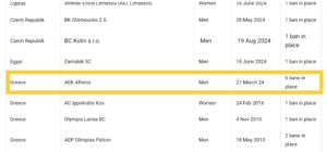 Η FIBA επέβαλλε ακόμα ένα ban στην ΑΕΚ για οφειλή του παρελθόντος, ανεβάζοντας τον αριθμό από πέντε σε έξι.