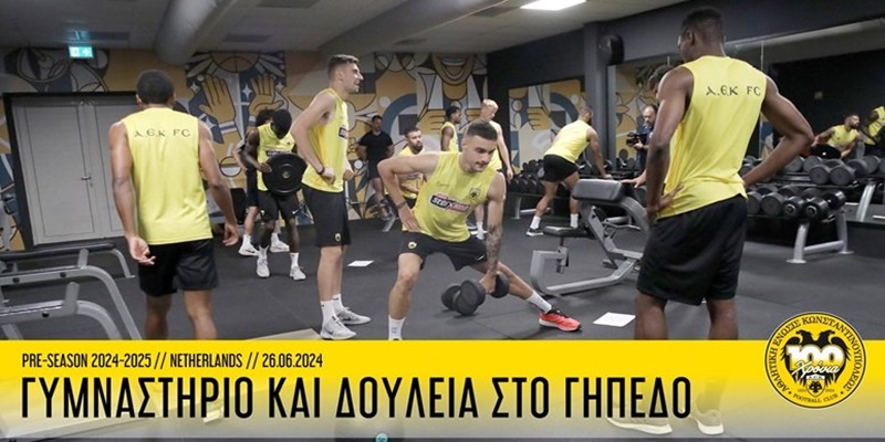 Η κάμερα του AEK TV βρέθηκε στην σημερινή πρωινή προπόνηση της Ένωσης και κατέγραψε στιγμές από την σκληρή δουλεία των ποδοσφαιριστών τόσο στο γυμναστήριο όσο και στο γήπεδο.