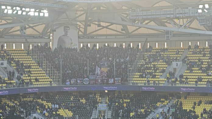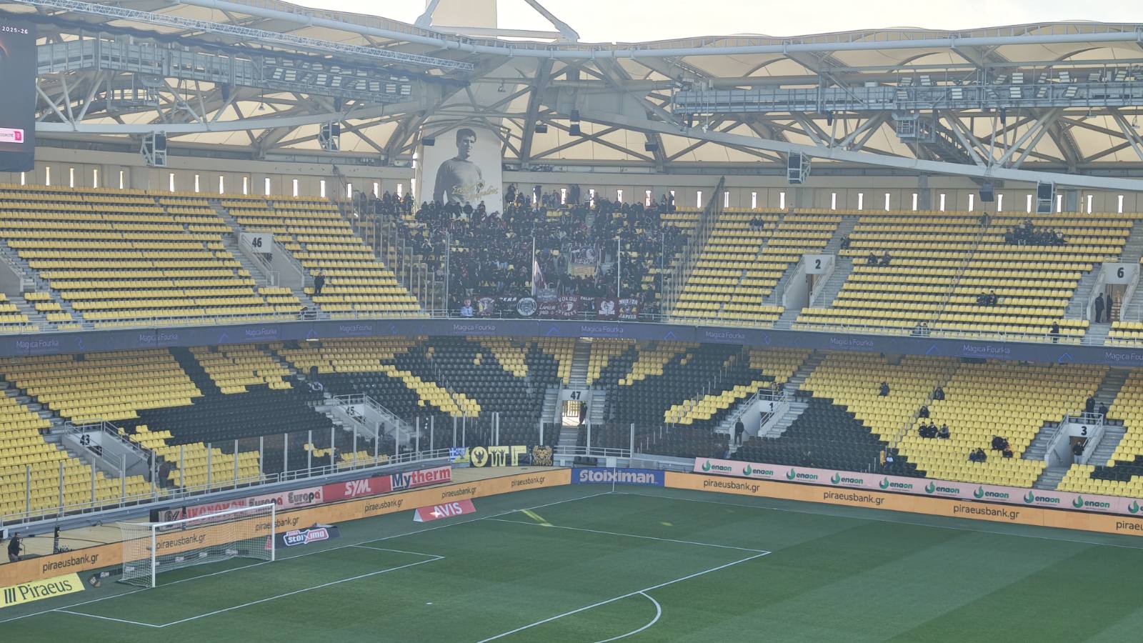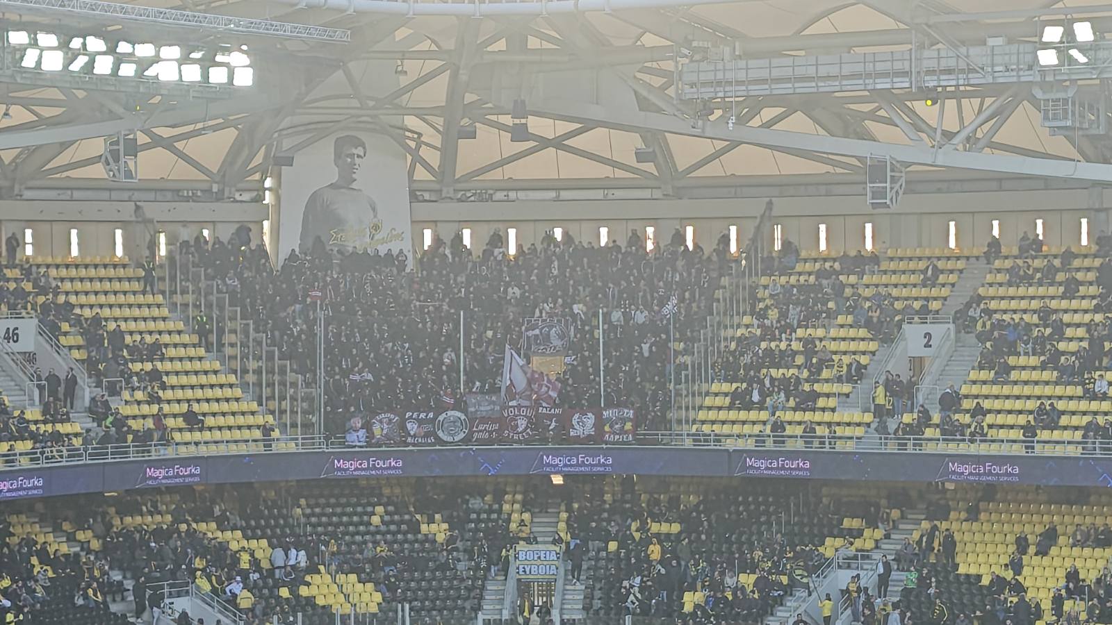 Οι φίλοι των «βυσσινί» έκαναν αισθητή την παρουσία τους στην “Αγιά Σοφιά-Allwyn Arena”, καθώς από νωρίς γέμισαν τη θύρα 48 που τους παραχωρήθηκε.