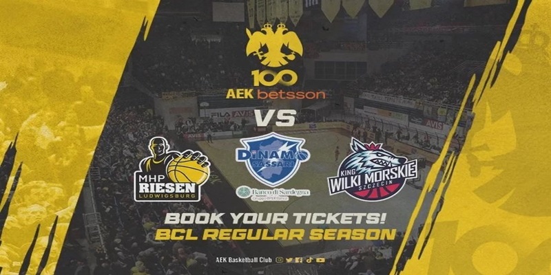 Η ΑΕΚ BETSSON BC ανακοινώνει, ότι οι φίλες και οι φίλοι της ΑΕΚ θα έχουν τη δυνατότητα να προμηθευτούν πακέτο Εισιτηρίων Διαρκείας 3 αγώνων -στο Olympic Hall των Άνω Λιοσίων- με αντιπάλους τις Λούντβιγκσμπουργκ (Γερμανία), Ντιναμό Σάσαρι (Ιταλία) και Κινγκ Στσέτσιν (Πολωνία).