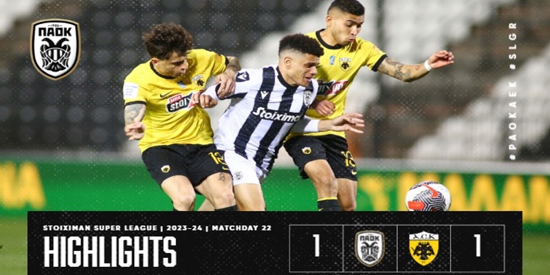 Στο 1-1 έμειναν ΠΑΟΚ και ΑΕΚ στο ντέρμπι κορυφής, το οποίο διεξήχθη στο γήπεδο της Τούμπας για την 22η αγωνιστική του Πρωταθλήματος της Stoiximan Super League.
