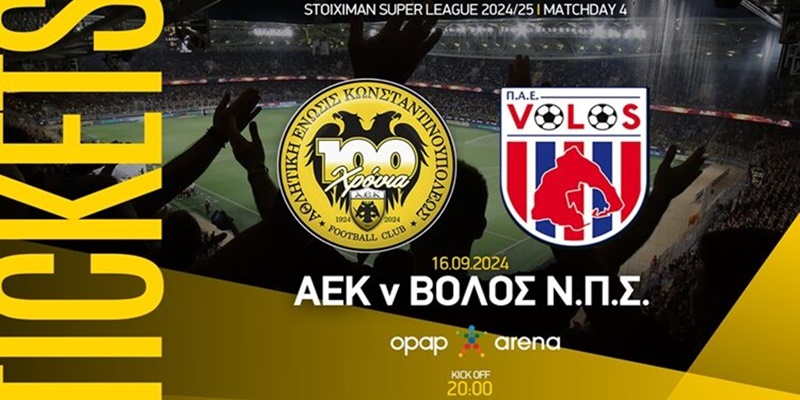 Η ΠΑΕ ΑΕΚ ανακοινώνει ότι σήμερα στις 16:00 θα αρχίσει η διάθεση των εισιτηρίων για τον αγώνα πρωταθλήματος με τον Βόλο ΝΠΣ, που θα διεξαχθεί τη Δευτέρα 16 Σεπτεμβρίου στις 20.00, στην OPAP Arena.
