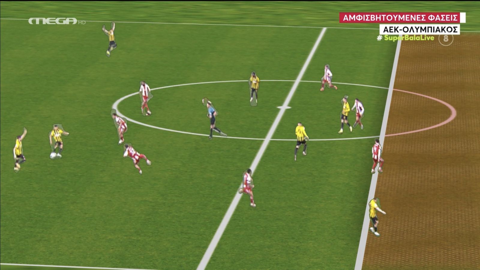 Το πλάνο δεν ήταν απόλυτα ευθυγραμμισμένο. Οι γραμμές μπήκαν «με το μάτι». Η κάμερα δεν ήταν παράλληλη με τη φάση. Κι όμως, το συμπέρασμα παρουσιάστηκε σαν αδιαμφισβήτητο: οφσάιντ. Σαν να λειτούργησε VAR μέσα στο στούντιο — χωρίς τεχνολογία, χωρίς συστήματα, μόνο με μοντάζ.