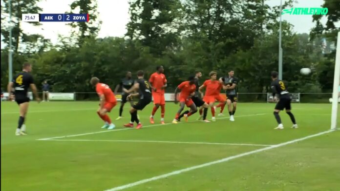 Η ΑΕΚ δέχθηκε και δεύτερο στο φιλικό παιχνίδι με την Ζούλτε Βάρεγκεμ όταν στο 75 ύστερα από εκτέλεση κόρνερ από τα δεξιά ο Εμέκα έσπρωξε με το γόνατο την μπάλα στα δίχτυα του Στρακόσα.