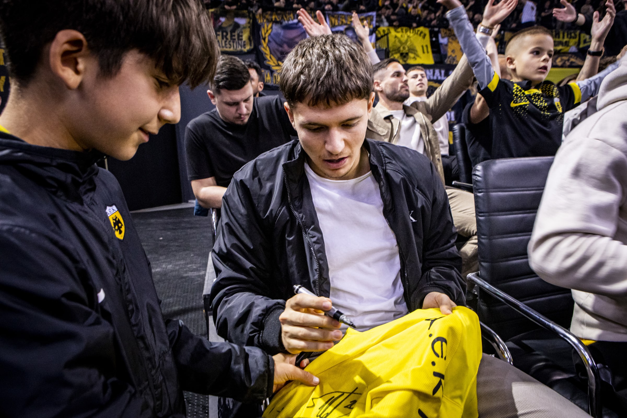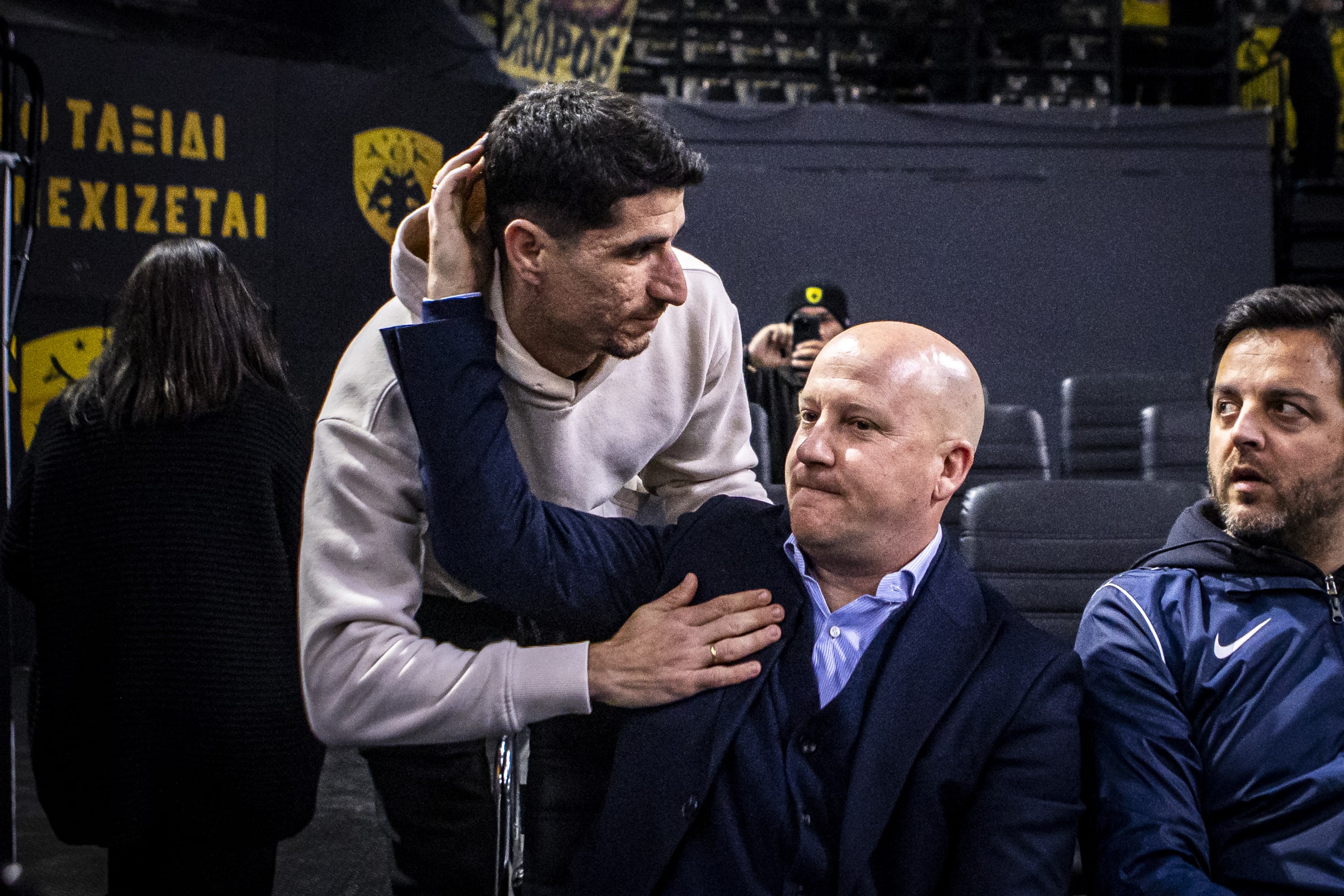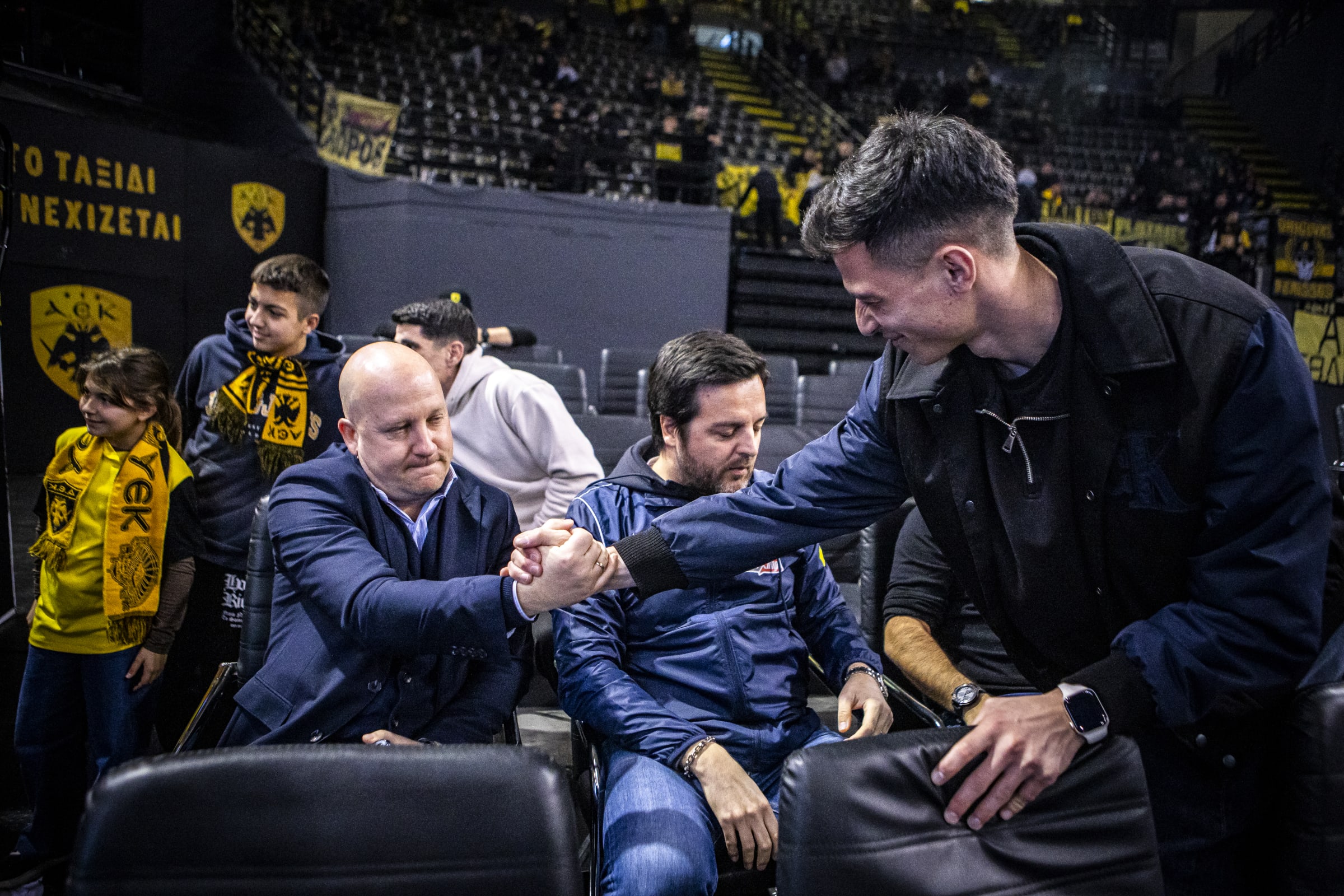 Οι παίκτες της ΑΕΚ, ο Μάρκο Νίκολιτς και ο Χαβιέ Ριμπάλτα βρέθηκαν στο κλειστό στα Άνω Λιόσια για να παρακολουθήσουν τη ''Βασίλισσα''!