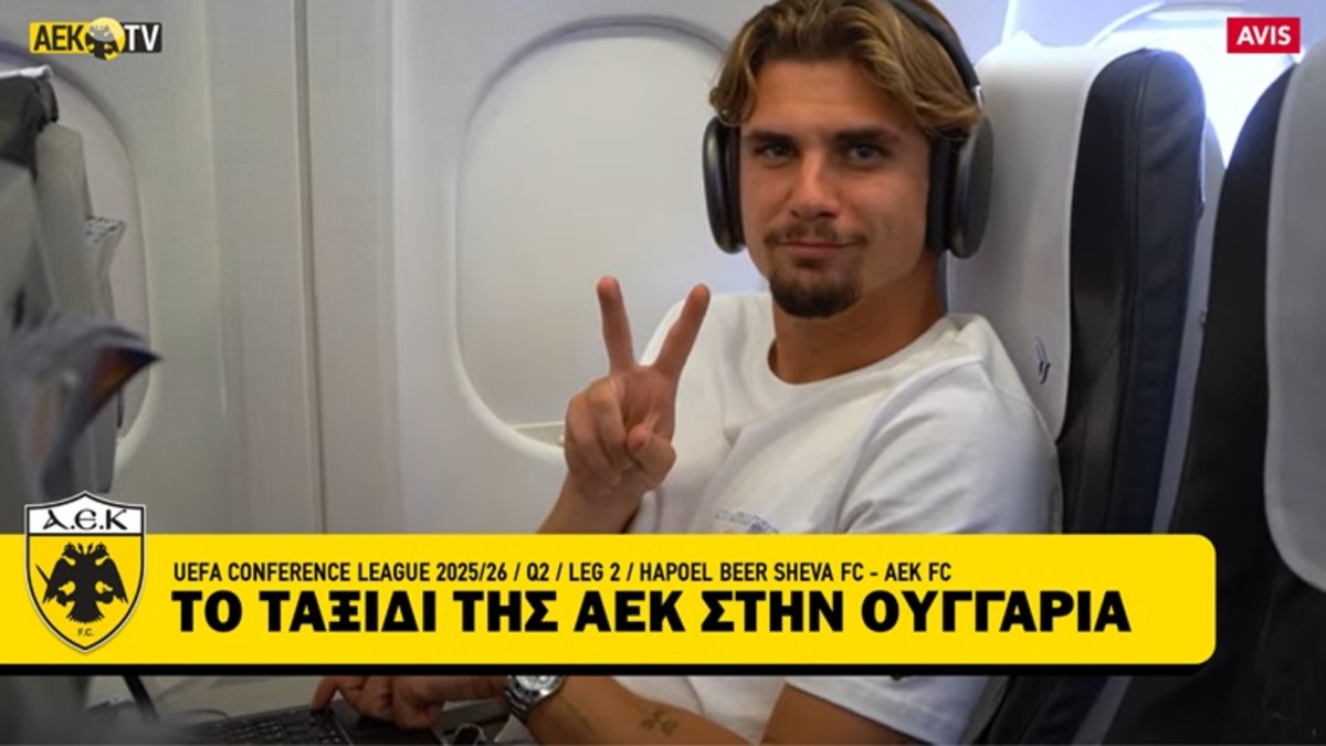 Η ΑΕΚ ταξίδευσε το πρωί για το Ντεμπρέτσεν της Ουγγαρίας, όπου αύριο το βράδυ θα δώσει τη ρεβάνς με τη Χάποελ Μπερ Σεβά για τον 2ο προκριματικό του UEFA Conference League. Η πτήση τσάρτερ της ελληνικής αποστολής ήταν γεμάτη αισιοδοξία και χαμόγελα και η κάμερα του AEK TV κατέγραψε τις στιγμές.