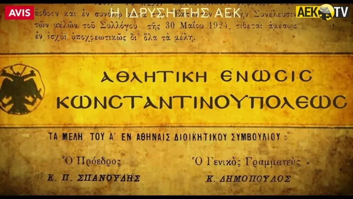 Η ΠΑΕ ΑΕΚ δημοσίευσε βίντεο το οποίο περιλαμβάνει το καταστατικό της ίδρυσης της Αθλητικής Ένωσης Κωνσταντινουπόλεως, καθώς σήμερα ο «Δικέφαλος» συμπληρώνει 102 χρόνια ζωής»
