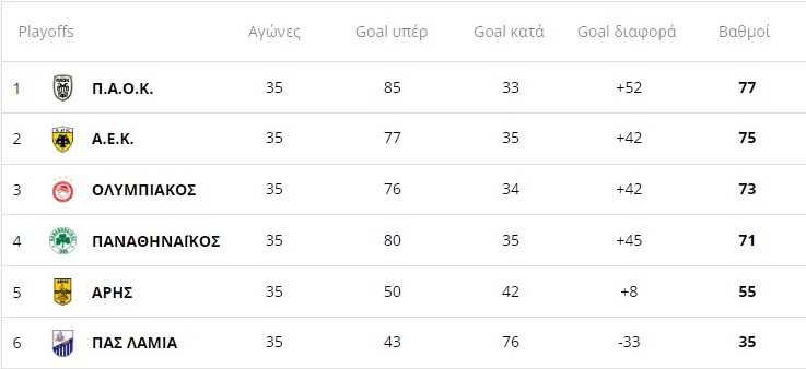 Aναλυτικά η βαθμολογία των Play-Off μια αγωνιστική πριν από το φινάλε του Πρωταθλήματος.
