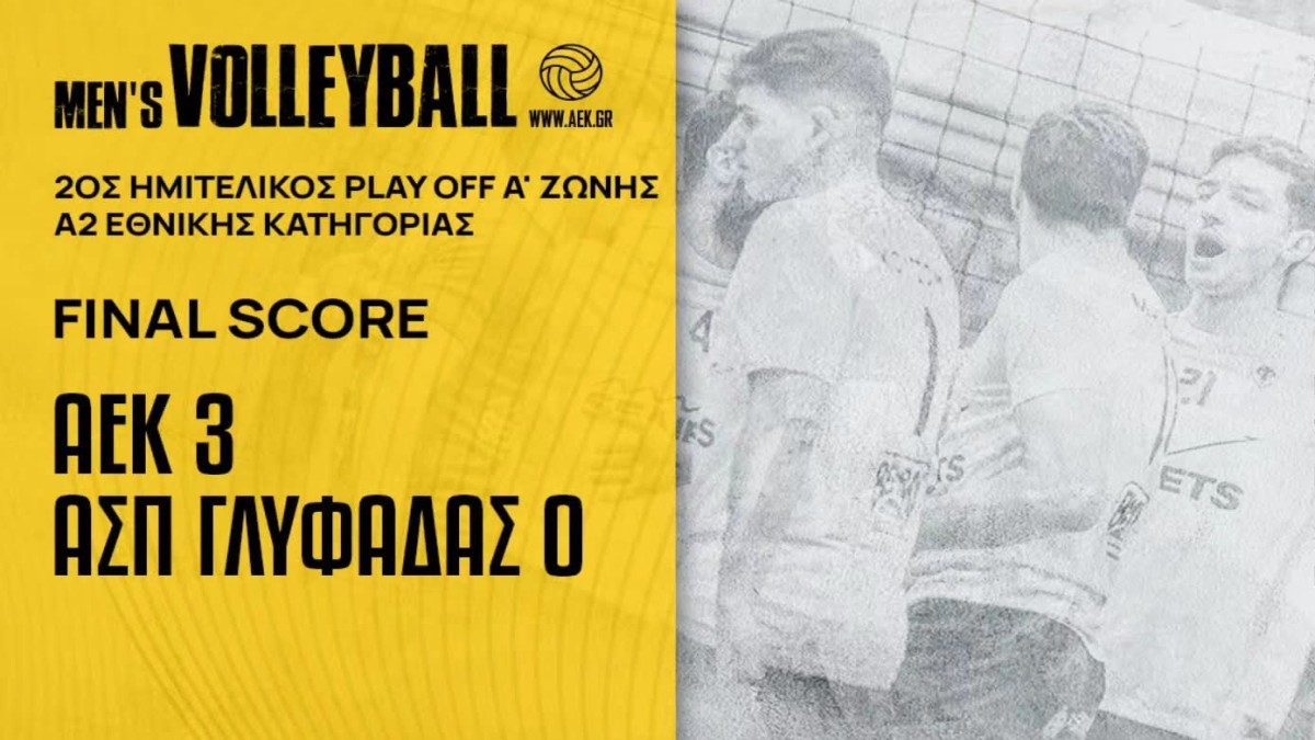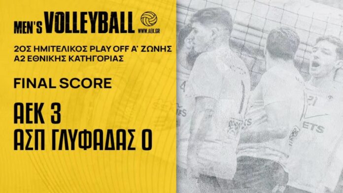 Με 3-0 σετ επικράτησε της Γλυφάδας η ΑΕΚ και με 2-0 στις νίκες προκρίθηκε στους Τελικούς των Play Off της Α’ Ζώνης της Α2 Εθνικής Κατηγορίας. Η «Ένωση» πραγματοποίησε μία ακόμα πολύ καλή εμφάνιση και έδειξε ότι βρίσκεται σε πολύ καλή κατάσταση. Οι «κιτρινόμαυροι» πλέον κοιτούν τους Τελικούς όπου θα κοντραριστούν με τον ΓΑΣ Παμβοχαϊκό, με μειονέκτημα έδρας, με την άνοδο να κρίνεται στις 2 νίκες.