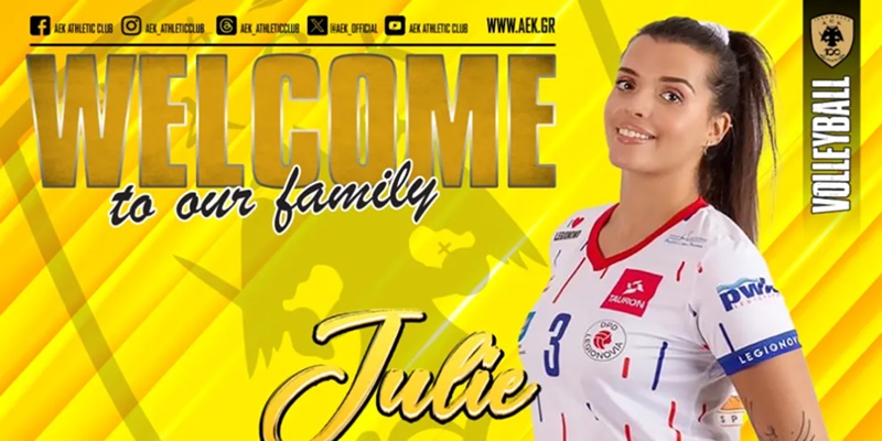 «Η ΑΕΚ βρίσκεται στην ευχάριστη θέση να ανακοινώσει την έναρξη της συνεργασίας της με την Τζούλι Ολιβέιρα Σόουζα. Η 29χρονη (01/04/1995) Γαλλίδα διαγώνιος, ύψους 1,94 μ., υπέγραψε το συμβόλαιό της και εντάσσεται στο δυναμικό της γυναικείας ομάδας Βόλεϊ.