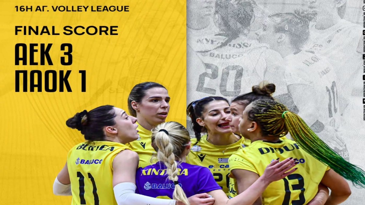 Η γυναικεία ομάδα της ΑΕΚ με πολύ καλή εμφάνιση κατάφερε να επικρατήσει του ΠΑΟΚ στο ντέρμπι που διεξήχθη στο ΕΑΚ του Ολυμπιακού Χωριού με 3-1 στα σετ του ΠΑΟΚ για τη 16η αγωνιστική της Volley League γυναικών με 3-1 στα σετ.