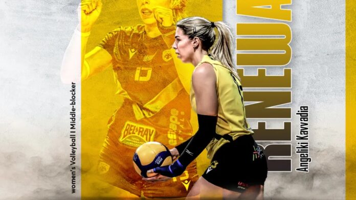 «Η ΑΕΚ βρίσκεται στην ευχάριστη θέση να ανακοινώσει την ανανέωση της συνεργασίας της με την Αγγελική Καββαδία. Η 32χρονη (17/02/1994) κεντρική, ύψους 1,88μ., υπέγραψε το νέο συμβόλαιό της και θα παραμείνει για άλλες δύο χρονιές στο δυναμικό της γυναικείας ομάδας Βόλεϊ του Συλλόγου.