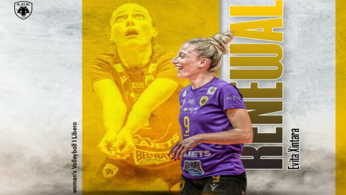 «Η ΑΕΚ βρίσκεται στην ευχάριστη θέση να ανακοινώσει την ανανέωση της συνεργασίας της με την Εβίτα Ξηντάρα. Η 33χρονη (09/02/1993) λίμπερο, υπέγραψε το συμβόλαιό της και θα παραμείνει για δεύτερη διαδοχική χρονιά και 4η συνολικά στα «κιτρινόμαυρα».
